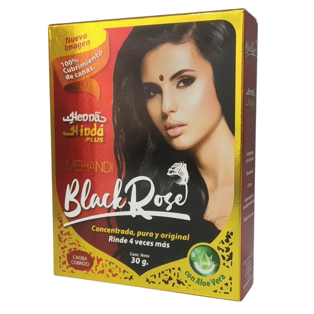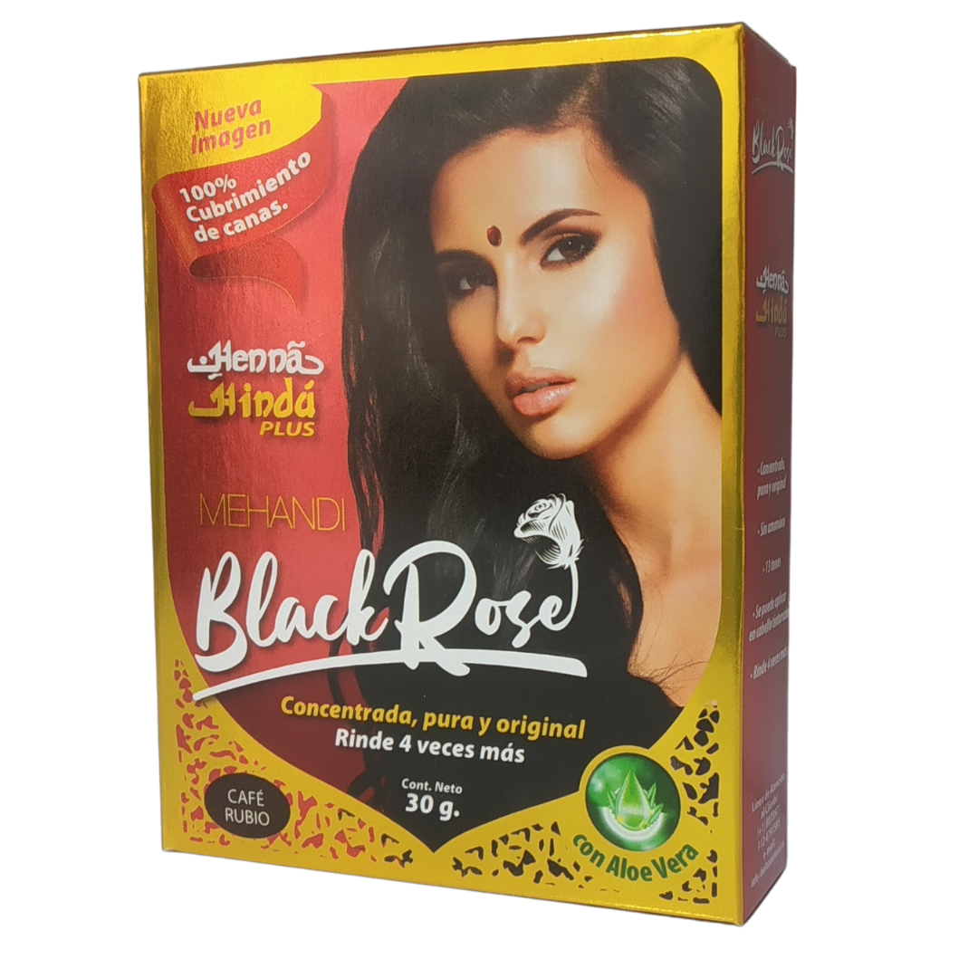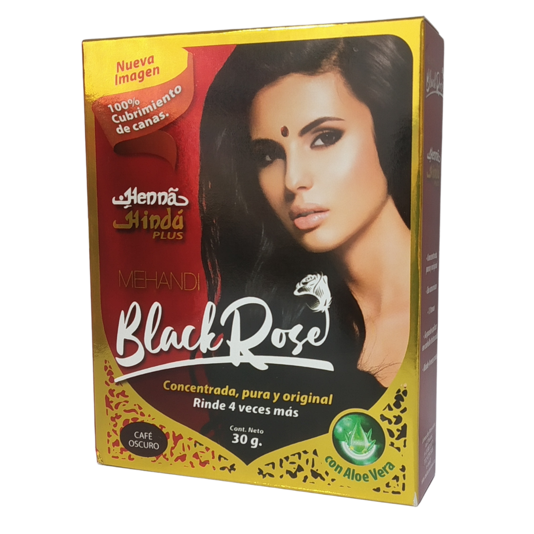 Kit Henna Hindú BlackRose - BlackRose - Caja 30 gr La Henna Hindú Original es un tinte natural que se fabrica a partir de las hojas de árbol de la henna, se secan, se muelen y se les adiciona el pigmento de color y el aloe vera, fabricado 100% en la India, es un producto original, puro y concentrado, por esta razón rinde 4 veces mas. Empacado en un material que no permite el ingreso de los rayos del sol, lo cual brinda al producto estabilidad en sus colores y mayor calidad y frescura.