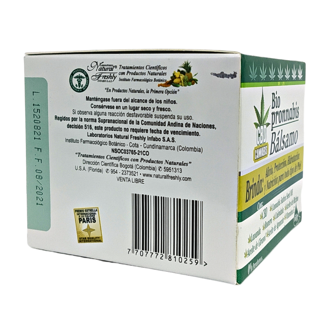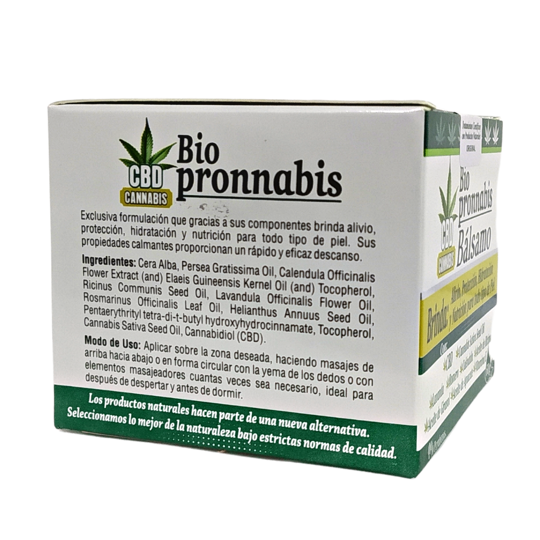 Biopronnabis Balsamo - Natural  Freshly - Frasco 60 g El Bálsamo Biopronnabis es una exclusiva formulación que gracias a sus componentes brinda alivio, protección, hidratación y nutrición para todo tipo de piel. Sus propiedades calmantes proporcionan un rápido y eficaz descanso.