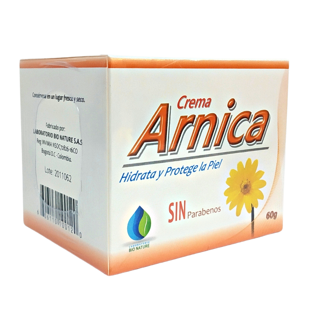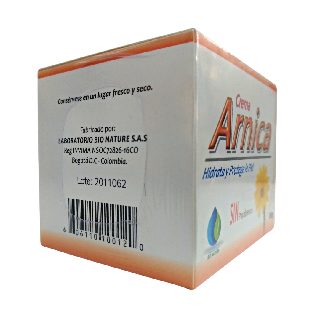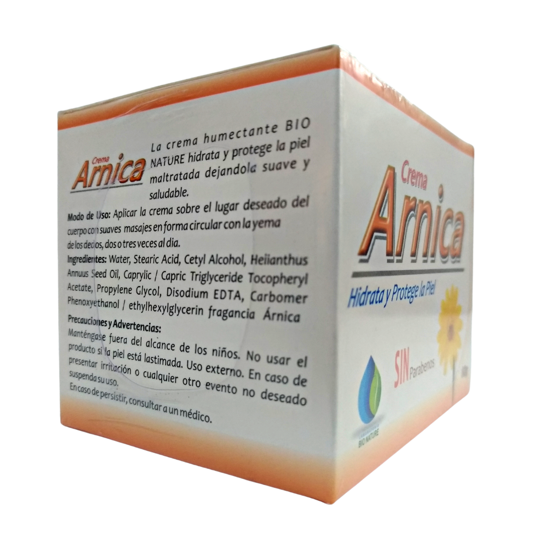Crema de Árnica - Bio Nature - Frasco 60 gr La Crema de Árnica se usa generalmente para aliviar dolores musculares e inflamaciones y curar heridas. Cuando se aplica sobre la piel, puede mejorar la sanación al reducir la hinchazón y el dolor y acelerar la reabsorción de la sangre.