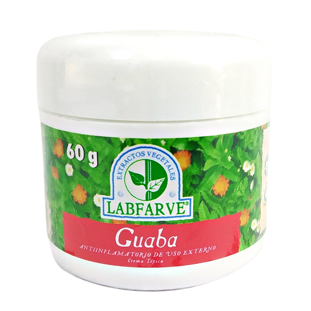 Crema de Guaba - Labfarve - Frasco 60 gr Es una crema que gracias a su poder Anti-Inflamatorio sirve para las venas várices, úlceras varicosas y hemorroides.