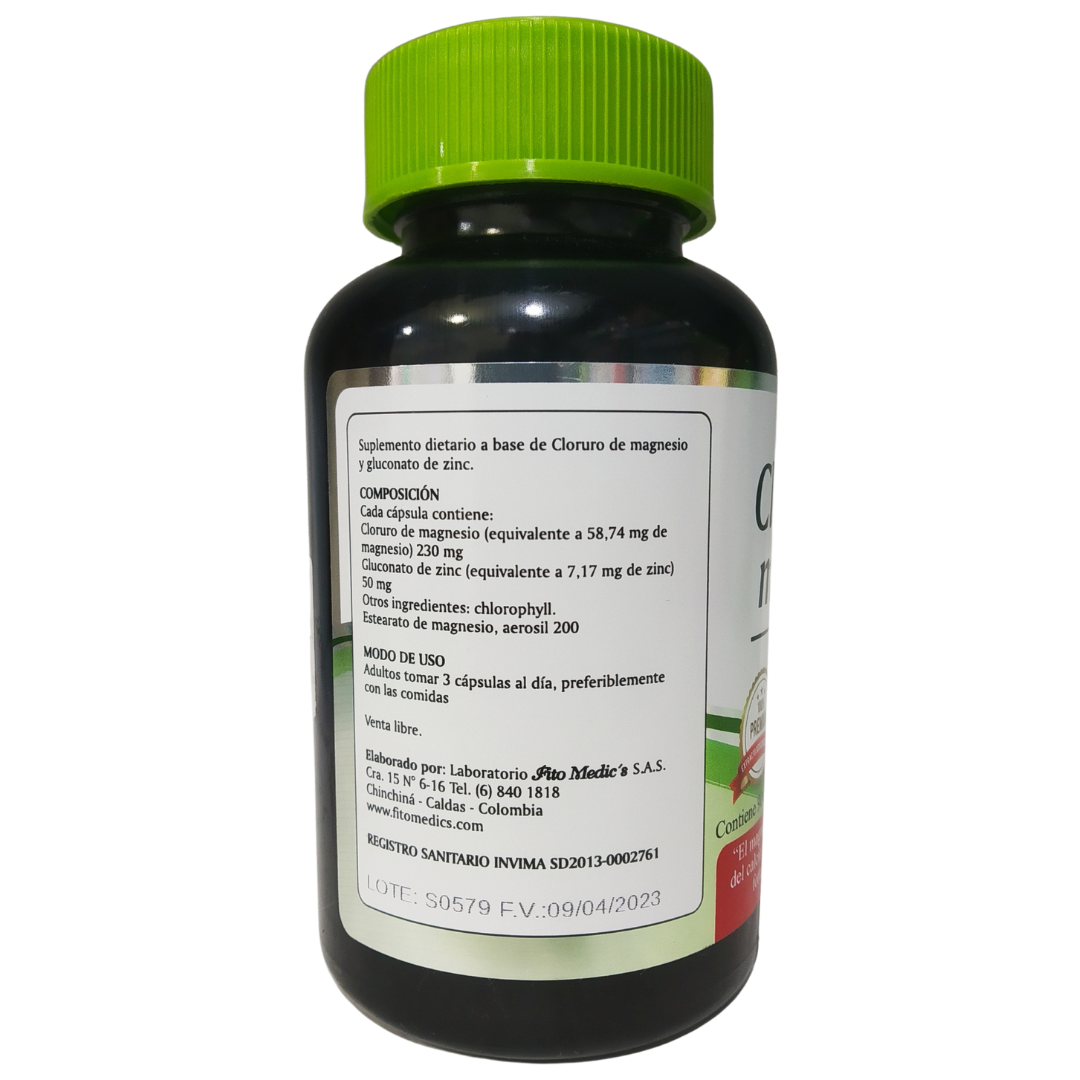 Cloruro de Magnesio - Fito Medic´s - 90 Cápsulas El Magnesio promueve la absorción y retención del calcio. Igualmente interviene en la función nerviosa y muscular.