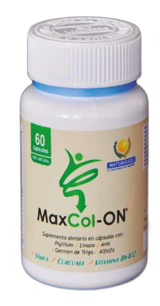 MaxCol - ON - Naturasol - Frasco x 60 / 120 Cápsulas El MaxCol - ON es una fórmula que contiene un 80% en fibra, y un 20% en plantas laxantes, siendo un excelente producto naturista para el cuidado, la limpieza y la mejoría de la digestión.