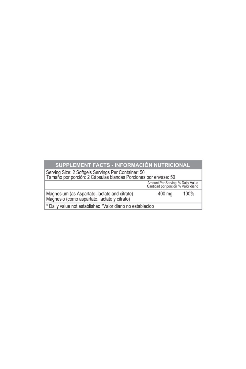 Super Magnesium 400 mg - Healthy America - Frasco x 100 Cápsulas El magnesio es un nutriente importante que está presente naturalmente en los alimentos y también está disponible en los suplementos dietarios. Esta fórmula contiene Magnesio en 3 formas: Aspartato, Lactato y Citrato.