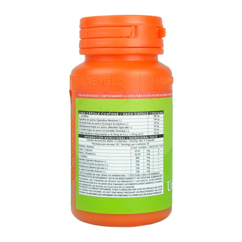 Uno A Plus - Irene Melo - Frasco x 50 Cápsulas Función principal es limpiar y preparar el cuerpo para eliminar los excesos a nivel general, además de controlar la ansiedad. Los componentes como la L-Carnitina brindan niveles adecuados de Omega 3, facilita la oxidación de excesos en el cuerpo, desecha los residuos innecesarios para el organismo, junto con ello el Té verde ofrece acción laxante y diurética promoviendo la correcta digestión del organismo.