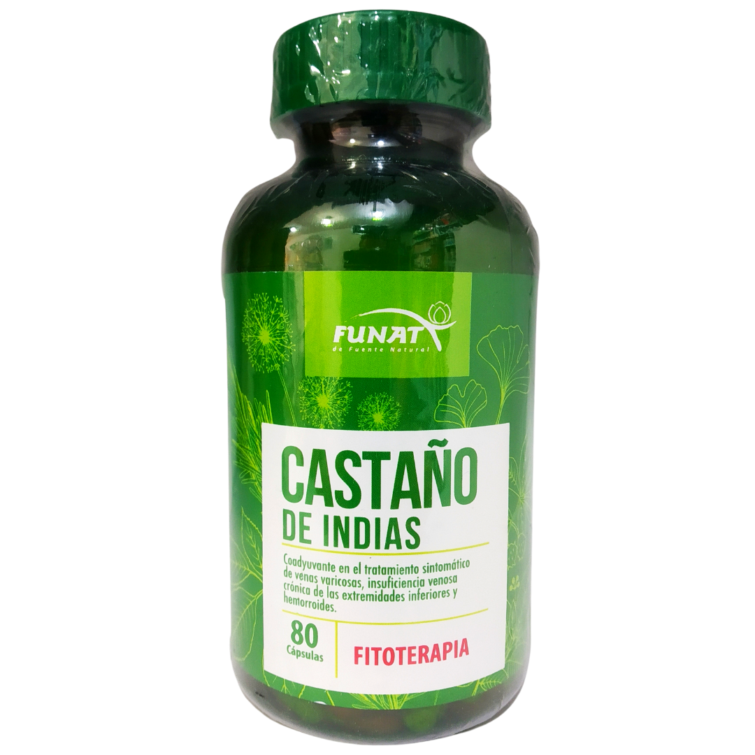 Castaño de Indias - Funat - Frasco x 80 Cápsulas El Castaño de Indias es una planta oleaginosa, es decir que puede extraerse aceite de las semillas, posee propiedades antiinflamatorias y antihemorroidales, por lo que es muy utilizada en el tratamiento de las hemorroides y de problemas en la circulación, como insuficiencia venosa y várices.